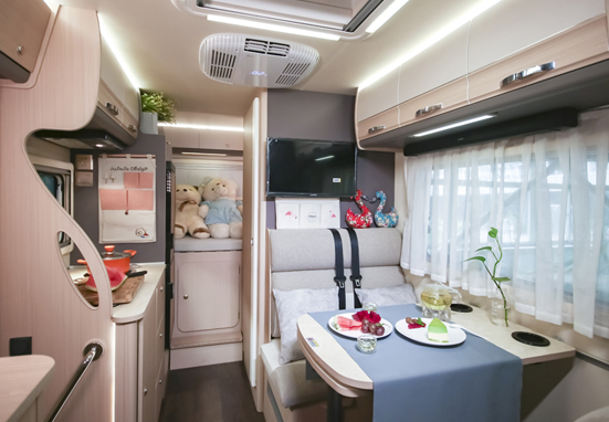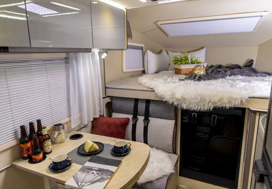 與自行式A型房車相比,自行式C型房車空間稍顯不足,但又比自行式B型房車空間寬敞、設備齊全--起居室、廚房、盥洗室、臥室具有大量櫥柜,攜帶大量行李絲毫不成問題。同時車內(nèi)具有影音娛樂系統(tǒng)、空調(diào)、可轉化桌沙發(fā)椅等,總而言之,自行式C型房車是安裝在車輪上的空間緊湊、設備齊全的房車類型。